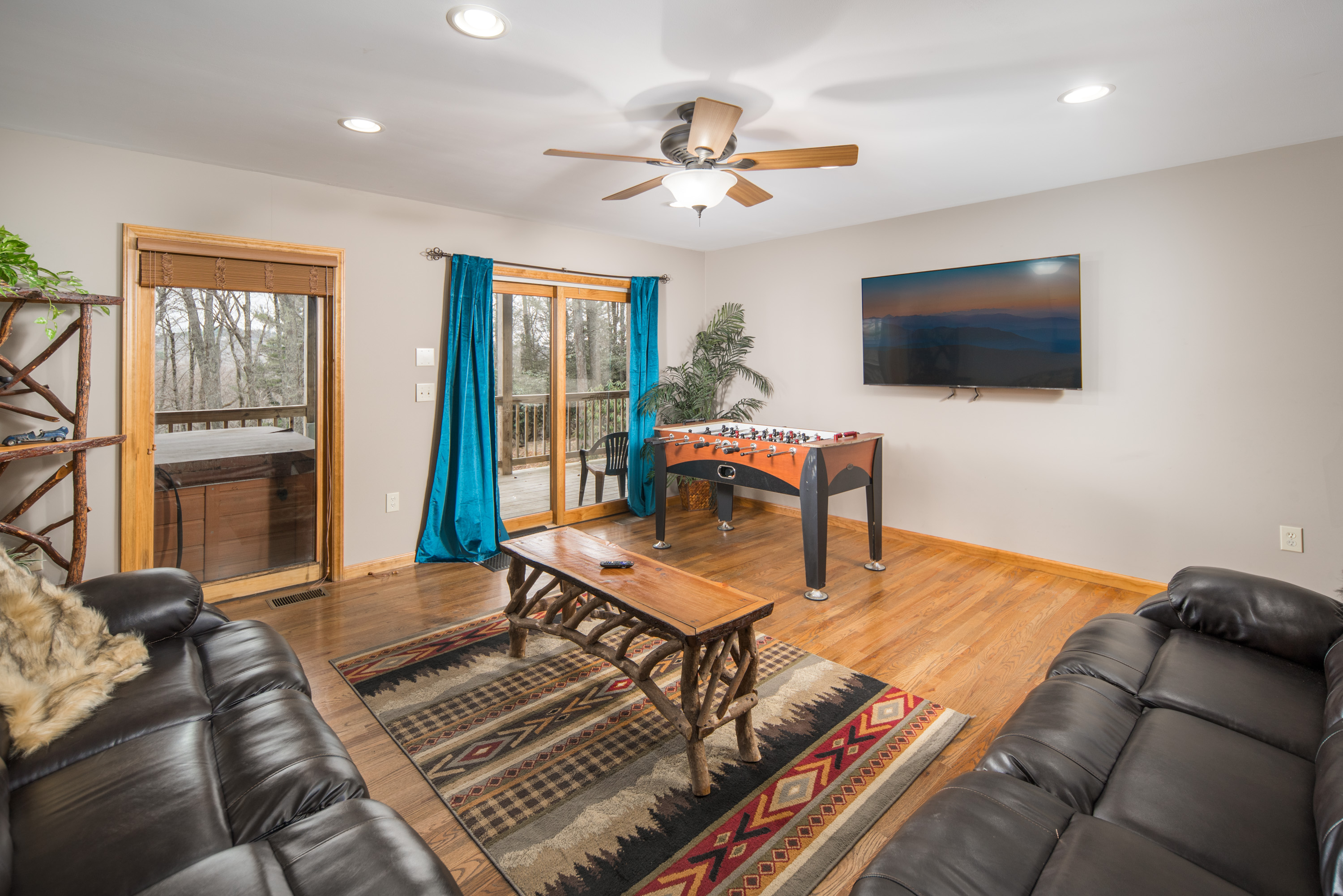 Spend your mornings relaxing in the spacious living room by the gas fire/out on the private deck soaking up the mountain air, while the kids play games in the downstairs entertainment room. Enjoy your afternoons grilling out, listening to Tweetsie Railroad in the distance, and taking in the long range views. After a busy day skiing or hiking, come back to your home away from home to roast s'mores around the firepit and end the night soaking in the private hot tub.